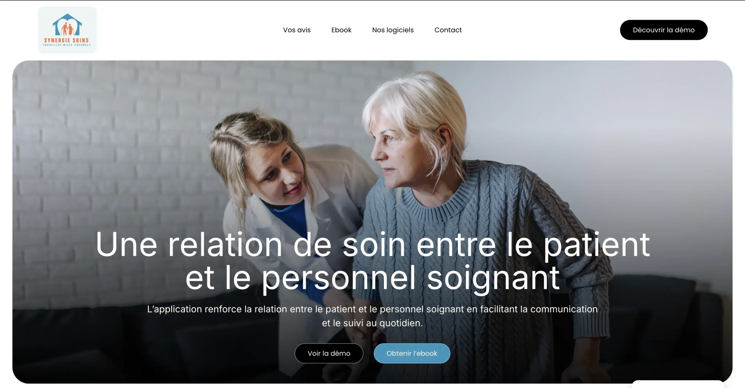 Durant ce projet, nous avons pris le temps de partager et d’aligner notre vision avec les attentes précises de Synergie Soins. L’objectif était de définir une direction claire et commune afin de concevoir un site one page parfaitement en adéquation avec la demande initiale, tout en respectant les codes et les exigences du secteur médical. Ce travail de réflexion et de cadrage nous a permis de proposer une solution cohérente, pensée spécifiquement pour les aides-soignantes et les infirmières libérales, en mettant l’accent sur la clarté, la confiance et l’accessibilité de l’information.